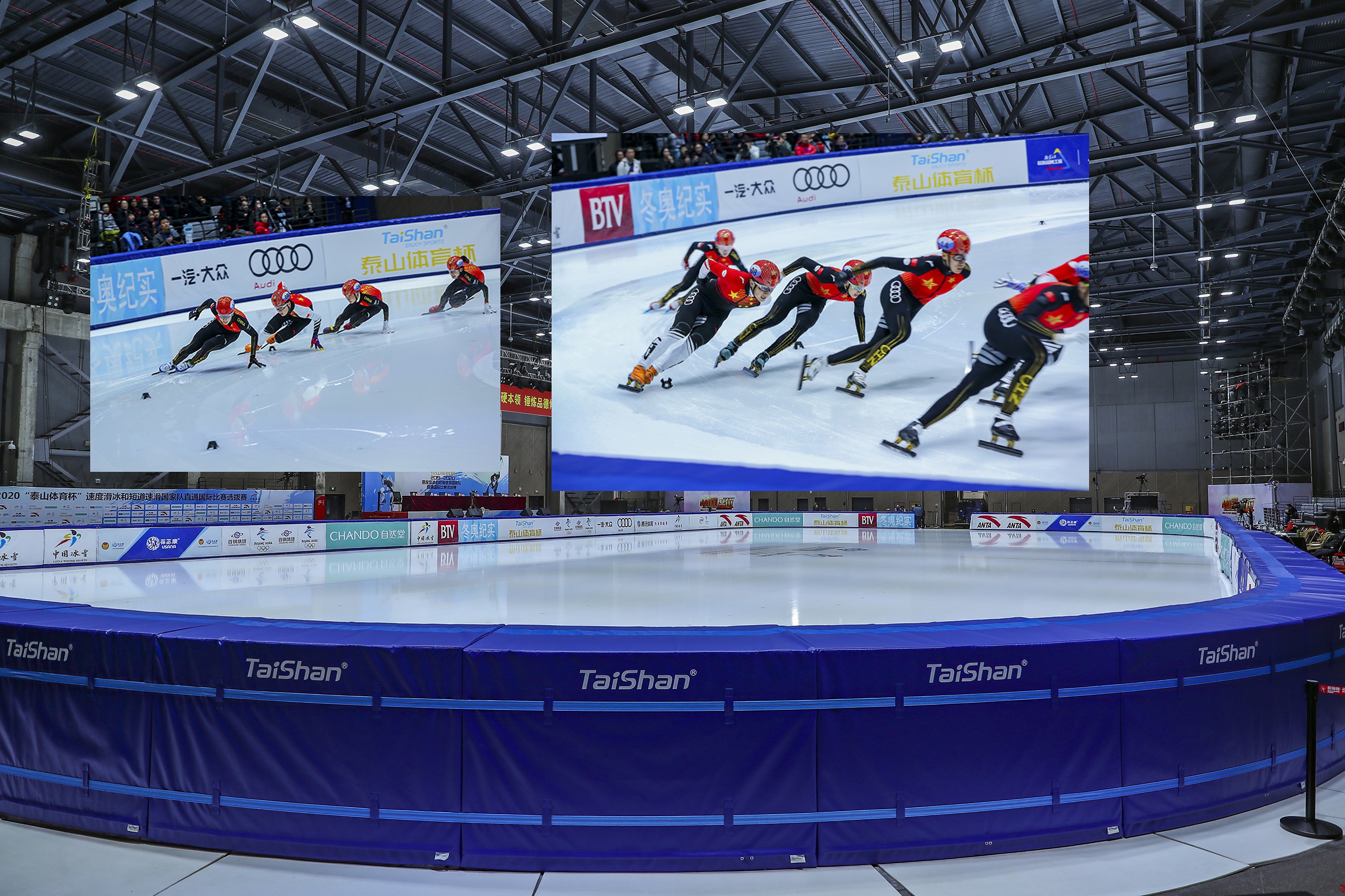 2019年新健出色的服务了意大利大学生运动会、第七届武汉世界军人运动会等国际性赛事。10月5日“新健体育杯”速度滑冰和短道速滑国家队直通国际比赛选拔赛开幕,新健自主研发的冰雪运动防撞界墙系列产品,首次亮相国际比赛,开创了冰雪世界的新未来!