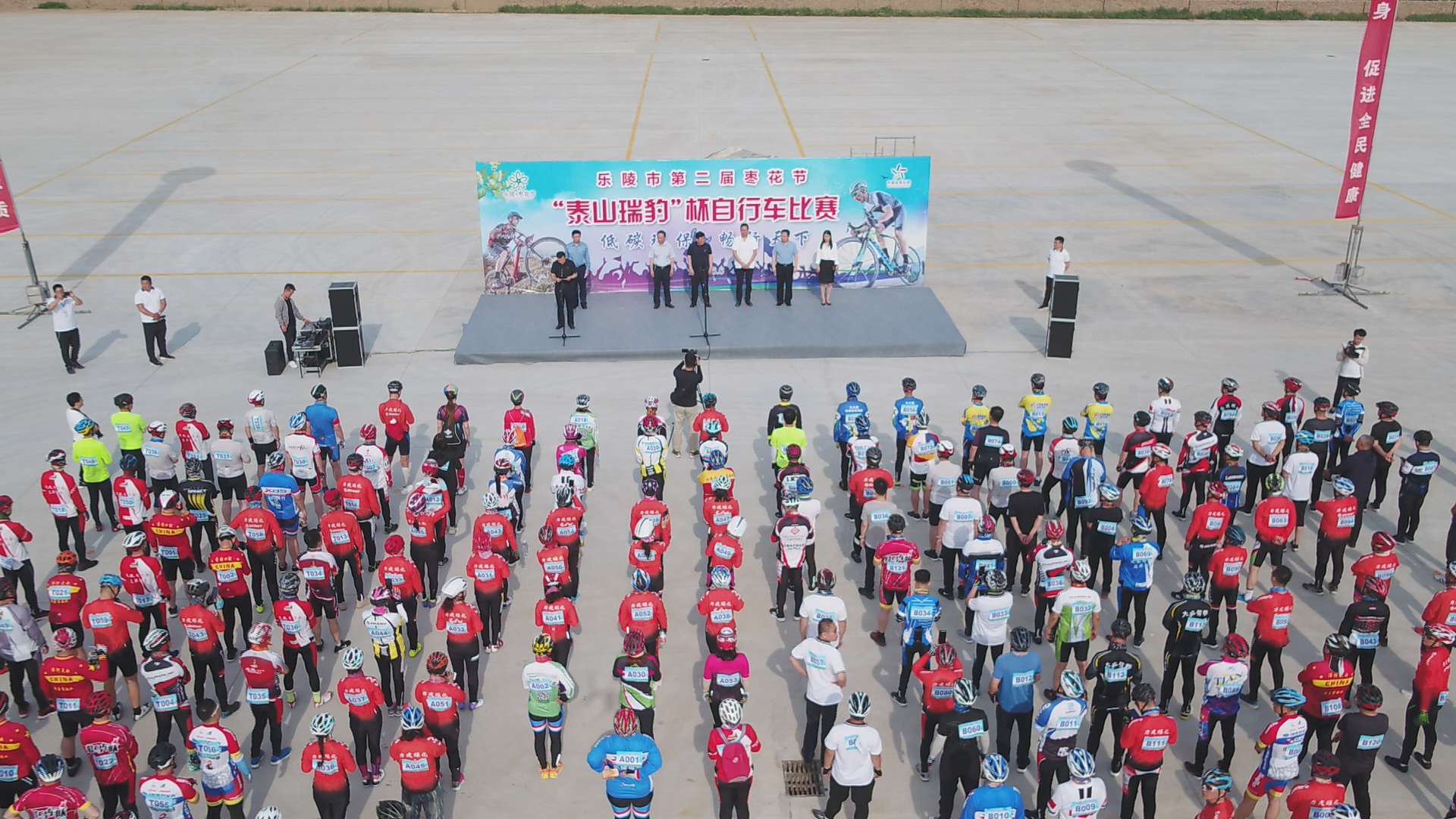 为更好的推动全民健身运动的开展,让人民大众享受自行车运动带来的乐趣,充分了解新健瑞豹自行车产品的文化魅力,6月6日,乐陵市第二届枣花节暨“新健瑞豹杯”自行车赛迎着初夏艳阳与盛开枣花鸣枪开赛。来自五湖四海的自行车运动员及爱好者相聚在飘满枣花香气的乐陵,围绕着30万亩枣林里开启了一场自行车运动的枣城热恋。乐陵市市委书记樊廷雷、市长王大山出席开幕式。