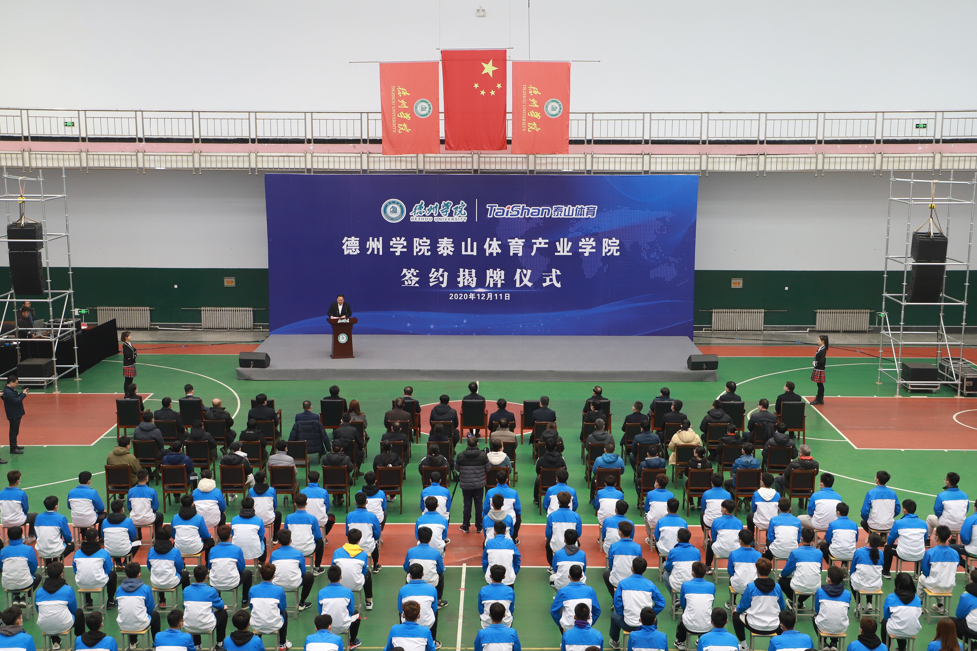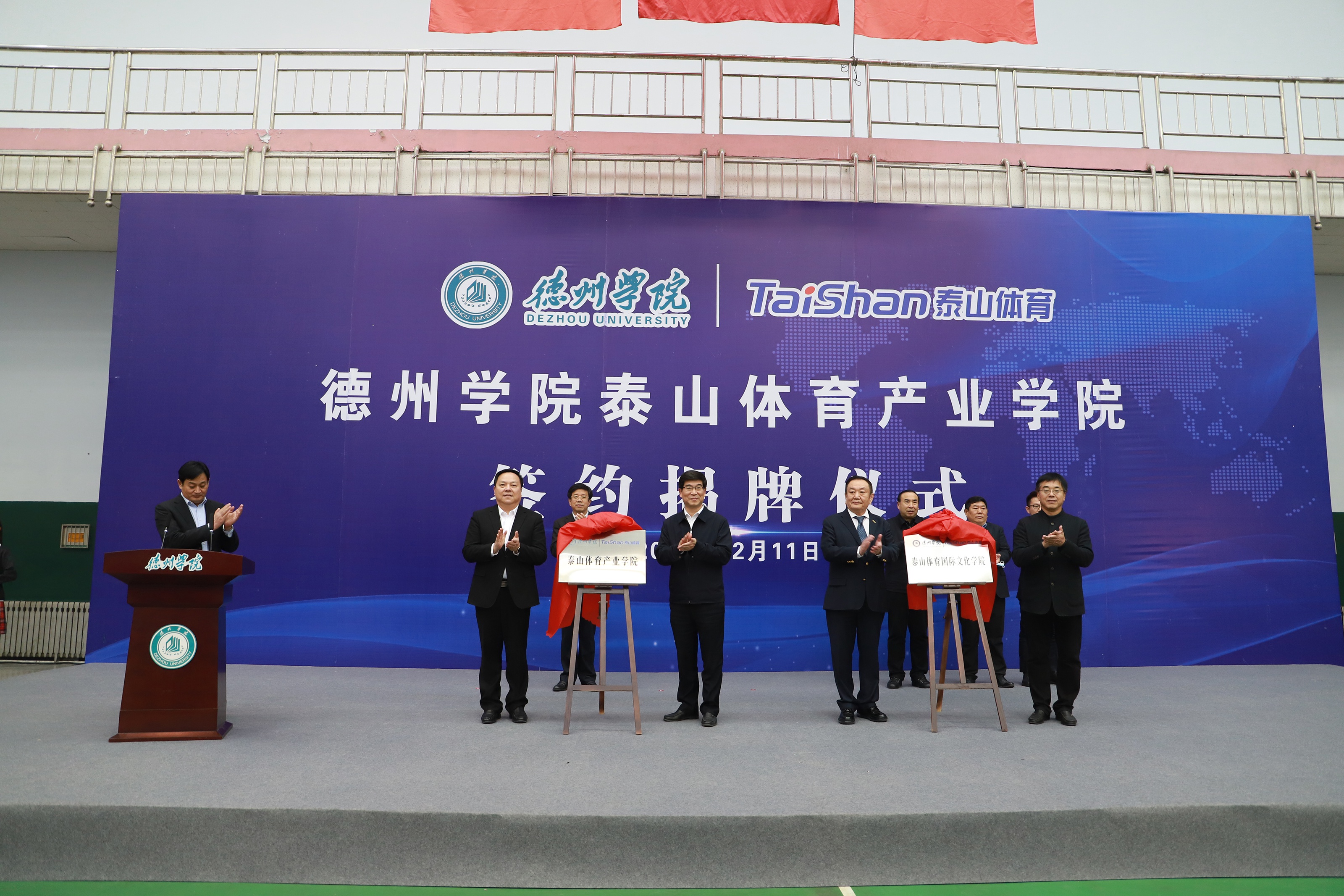 为深入推进科教结合、产学融合、校企合作,12月11日,由新健体育产业集团与德州学院共建的新健体育产业学院签约揭牌仪式在德州学院体育馆举行。德州市委书记李猛,市委常委、宣传部部长景文新,市委常委、秘书长张安民,德州学院党委书记车滨,德州学院院长赵胜村,乐陵市市委书记樊廷雷、全国政协委员、山东省体育产业联合会会长、新健集团董事长卞志良、新健集团副董事长卞青峰等领导出席仪式。