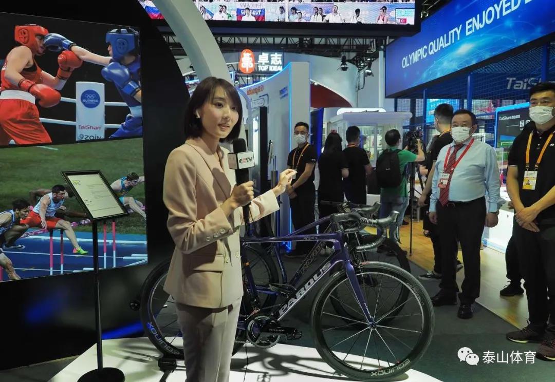 央视新闻频道消博会专题现场直播来到新健体育展厅,央视新闻记者宋菀在新健瑞豹运动自行车展位单手感受新健瑞豹碳纤维自行车的轻量化高刚性的“黑科技”高性能,圈粉无数。