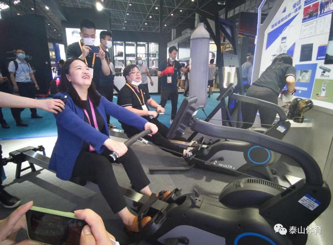 在居家健身智慧体育领域,央视财经新媒体记者李琳亲身体验新健体育智能拳击沙袋、智能划船滑雪训练器,并进行实时联网比赛,收获现场观众的加油助威。