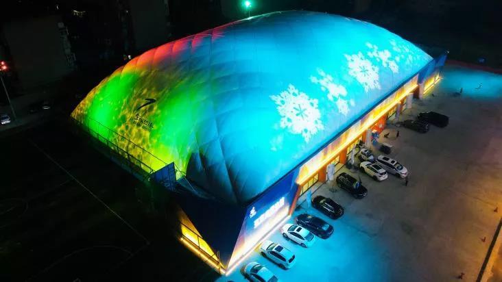 新健工程特色的“双智慧平台”,以基础建设为运行载体,依托5G+独立AI技术,打造出包括智慧场馆、智慧运动场、智慧校园、智慧步道、智慧笼式多功能运动场在内的多项“智慧+”解决方案,形成融合实时感知、科学决策、高效服务、节能运行等功能为一体的新型体育场所运行管理模式,节省场馆运营开支,丰富场馆内容,提升场馆综合效益。据了解,新健工程承建的石家庄市气膜滑冰馆搭载双智慧系统,全部采用5G智能设备,保证了场馆的运营及管理效率。同时,该场馆配套内外球幕系统,能够根据场馆的需求,夜间可实时投影相关内容,该馆已经成了石家庄市的地标性建筑。
