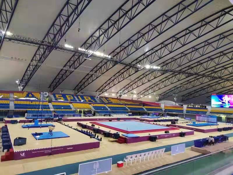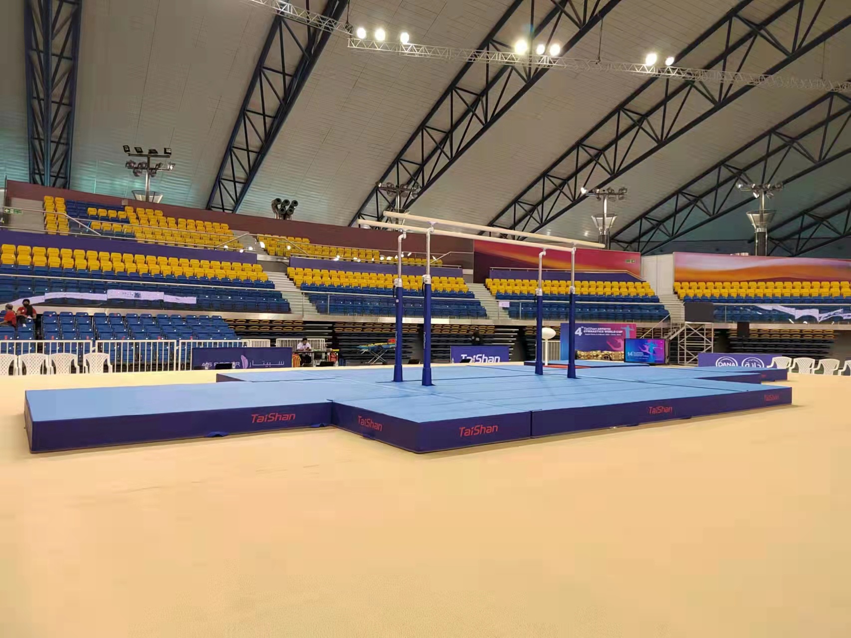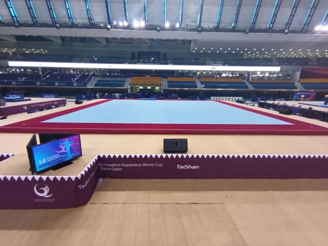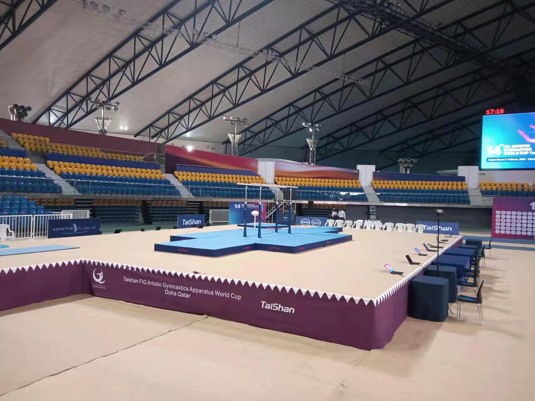 为保障运动健儿的出色发挥,新健体育派出了经验丰富的专业服务团队,于2月22日出发,到达多哈后,队员们不辞辛劳,马上投入到技术指导和安装工作中,并按计划于2月28日圆满完成男子训练馆、女子训练馆、竞赛馆等场馆的安装、调试工作。