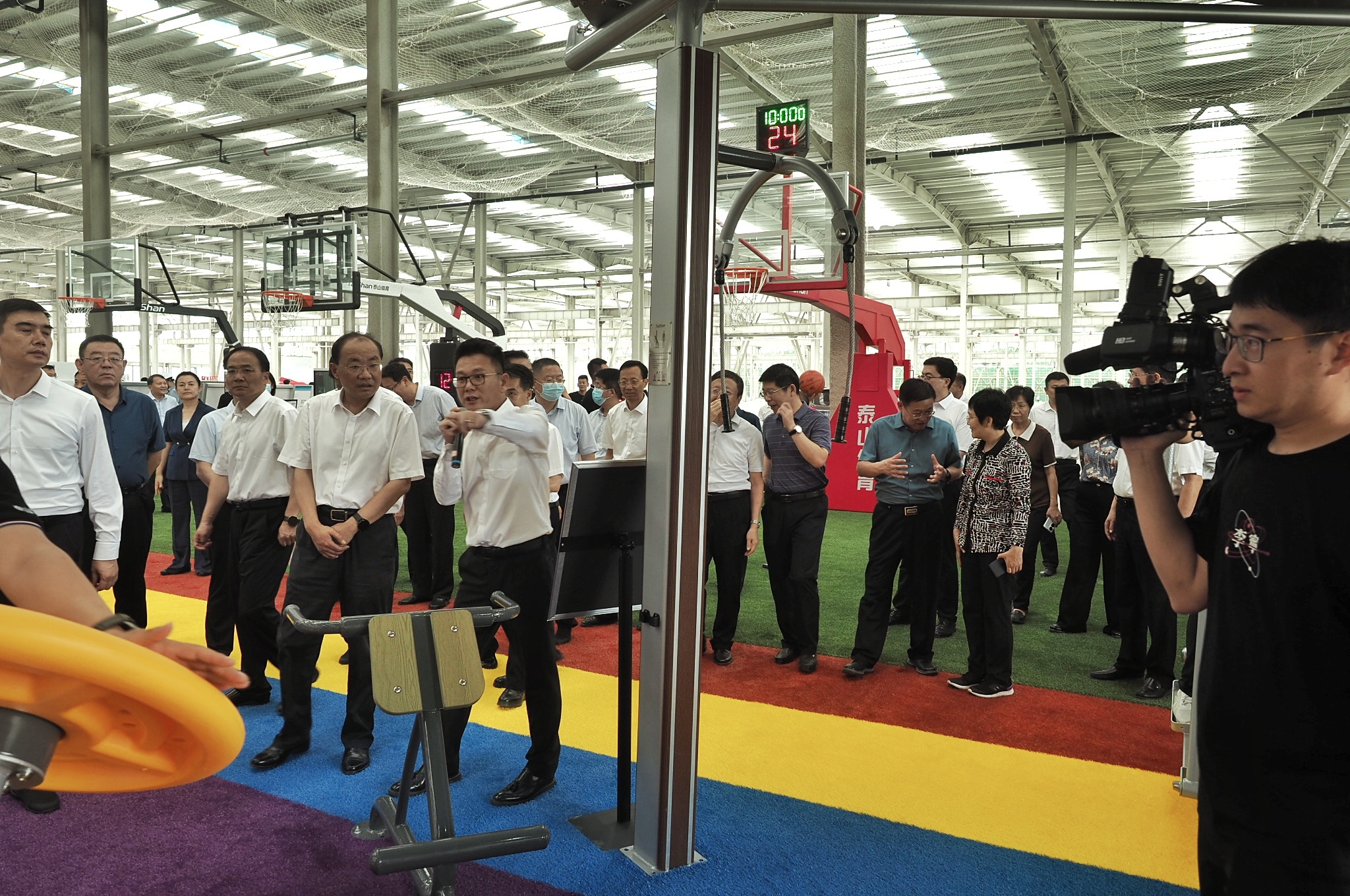 本次观摩的是新健体育(国际)产业园年产200万套智能健身包项目,该项目主要产品包括新材料竞技器材、智慧校园器材、智能儿童健身器材、室内外健身器材、多功能运动垫等五大类,覆盖体育、校园、家庭、社区、军警、公园等多种场景。
