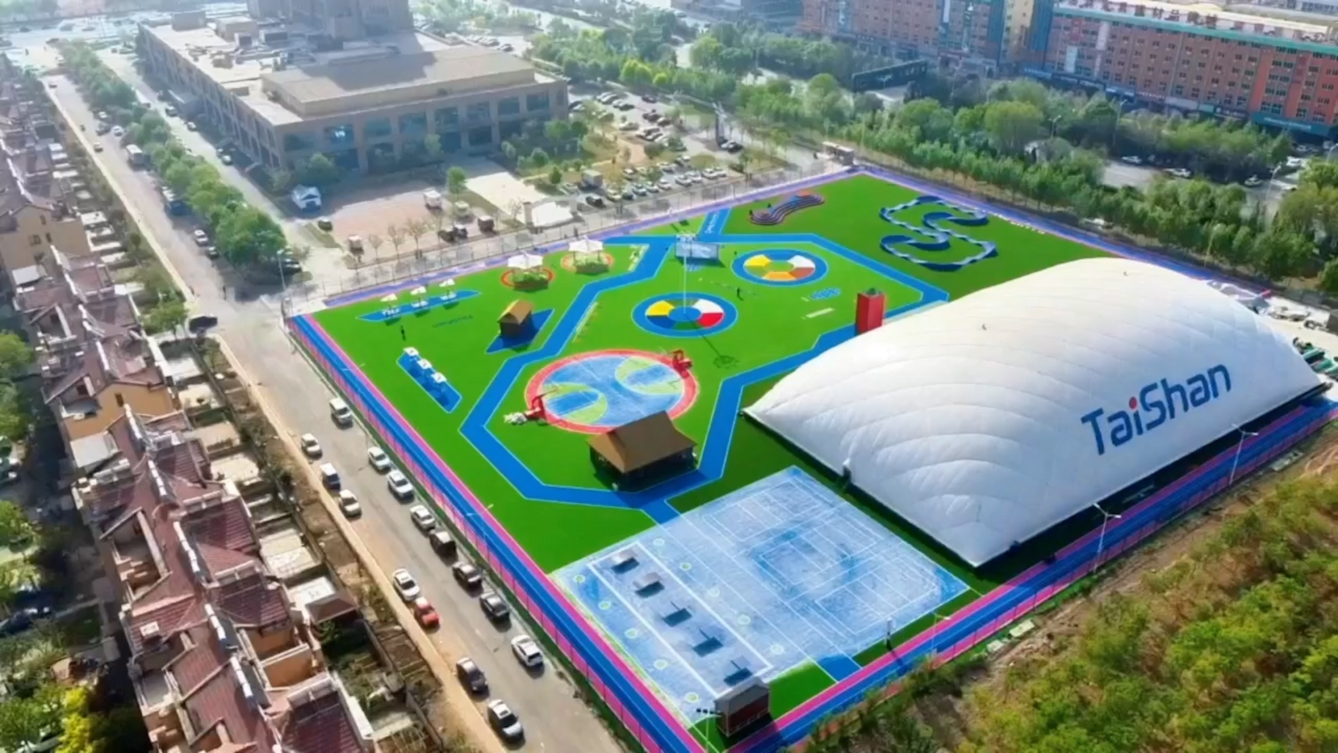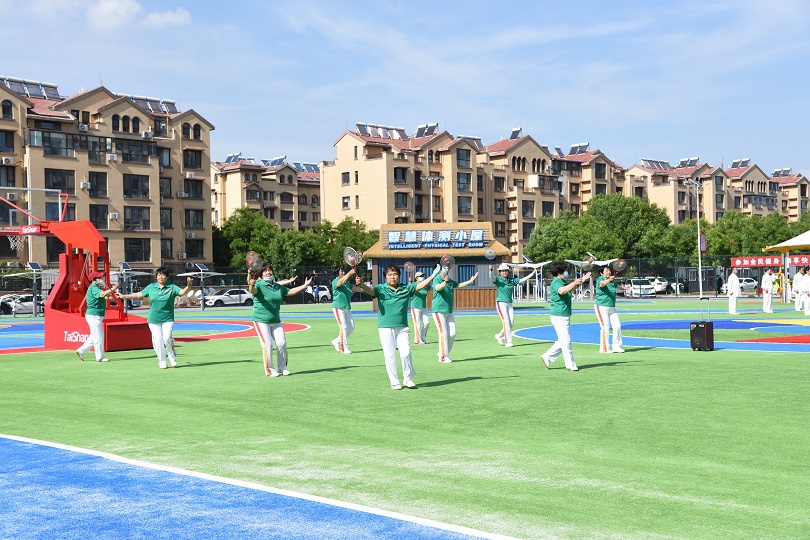在场地铺设上,均采用新健新材料功能人造草铺设,全方位保证运动安全和环保;气膜式篮球综合运动馆,内部设置2片篮球场、6片乒乓球场地及1片网球场。网球场同时套线4个羽毛球场地。场馆内可以满足体育运动,体育教学及群众比赛需求。从场馆到运动超市、智慧体测小屋,全部采用可装配式建筑。