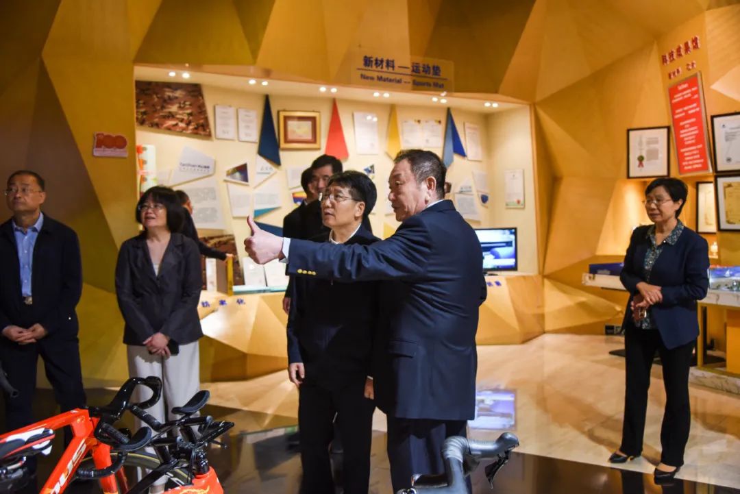 邓云锋实地考察了年产12万辆超轻型高档碳纤维自行车项目、年产2000万平新材料多功能人造草坪项目,对新健体育智能化、数据化、现代化的生产工厂和高端产品表示高度肯定。