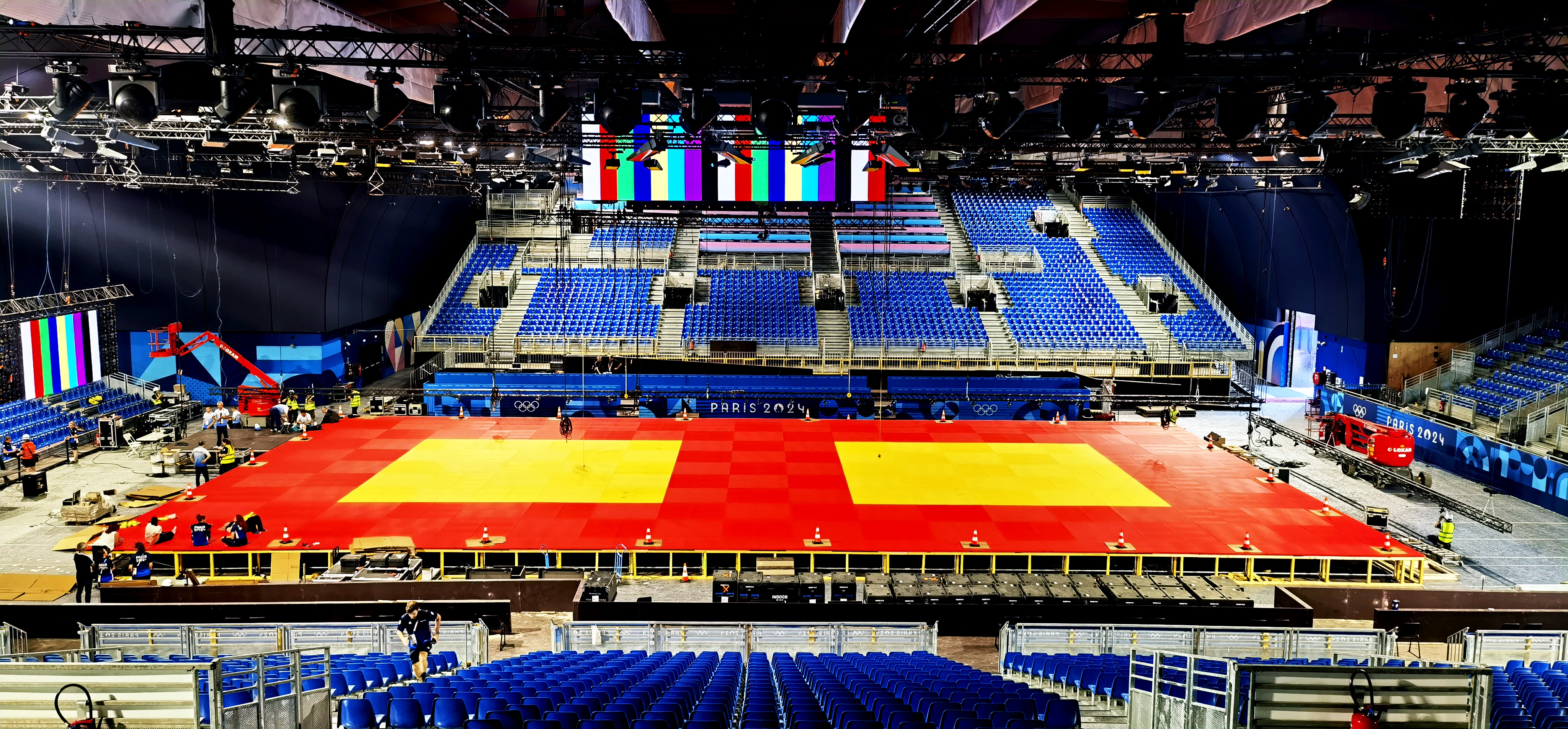 新健体育的专业安装团队以满腔热情和高效执行力,致力于柔道与摔跤比赛场馆的设备安装工作。在本届奥运会上,新健体育不仅提供了高品质的产品,还特别派遣了核心工程师团队。这支团队凭借多年的国内外大型赛事服务经验,确保每一环节的安装工作均满足国际顶级赛事的严格标准。