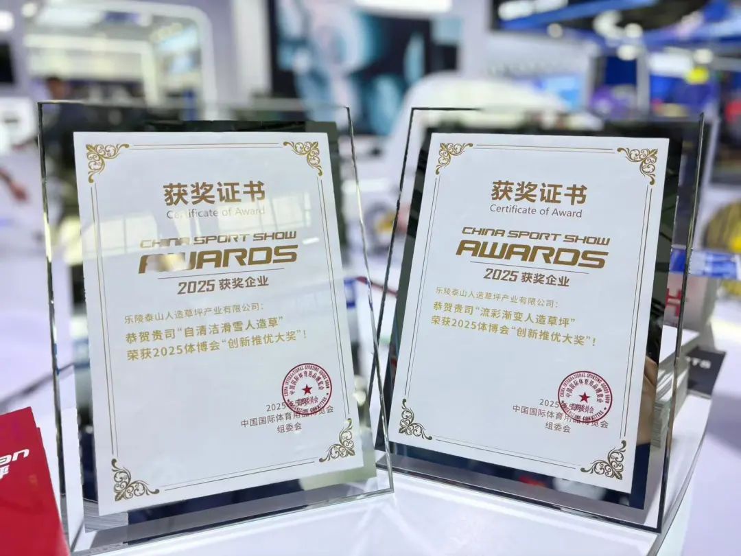 在这次评选中新健人造草坪的流彩渐变人造草坪产品,也获得中国体博会创新推优-中国制造之美专项奖”金奖。流彩人造草坪是一款突破传统的新型艺术草坪,采用独特工艺实现色彩渐变效果,使图案呈现立体三维观感,兼具实用功能和艺术价值。相比普通人造草坪,它能逼真还原油画、国画等艺术风格,适用于运动场地、家居装饰、公共空间美化及商业宣传等多个场景。产品具有经久耐用、环保可回收、耐磨防尘等优势,使用寿命可达数十年。