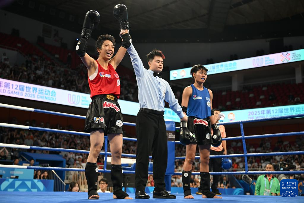 泰拳女子60kg:韩鑫在新健护具保护下,组合拳如雷霆出击,强势夺冠!