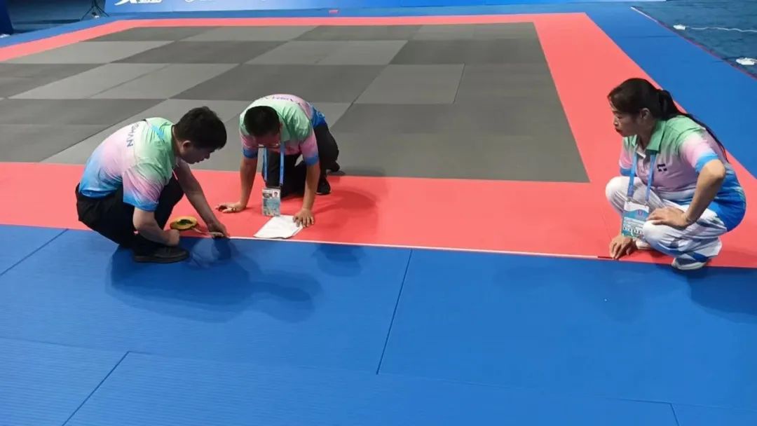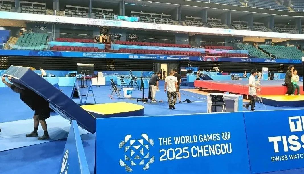 在世运会高强度赛程中,新健体育团队以"分秒必争"的专业精神,完成空手道转柔术、技巧转健美操等十余项复杂场地转换,多项转场在深夜12小时内精准完成。团队既追求"撤场如风"的效率,更坚持"毫米不差"的标准确保每件器材都达到最佳竞技状态。这种对速度与品质的双重极致追求,成就了赛事无缝衔接的流畅体验,让全球观众见证了中国赛事服务商的硬核实力。