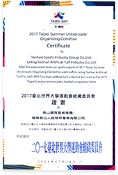 2017台北世界大学运动会组织委员会证书致乐陵新健人造草坪产业有限公司