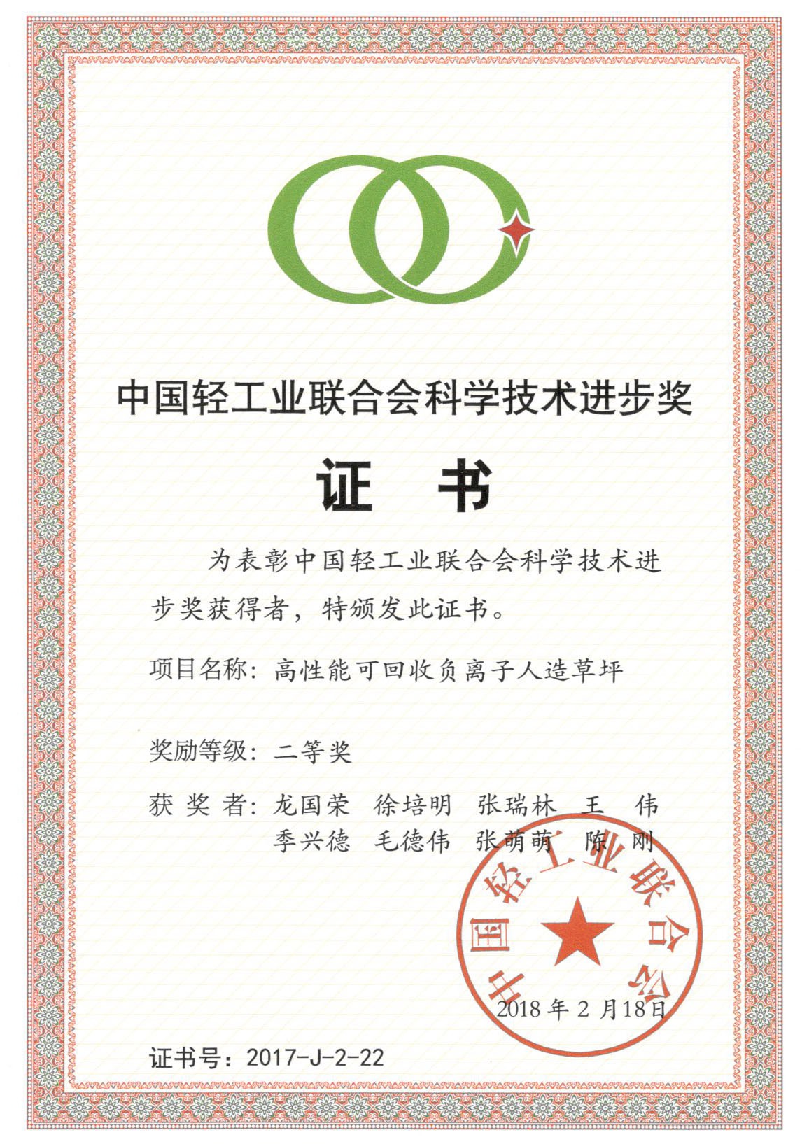 乐陵新健人造草坪产业有限公司负离子人造草坪年度十大新品2017