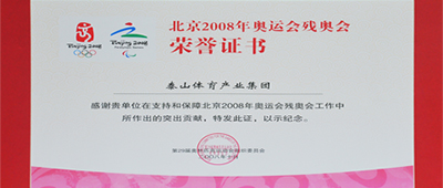 第二十九届奥林匹克运动会组织委员会为新健集团颁发北京2008年奥运会残奥会荣誉证书