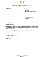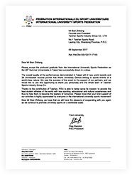 国际体联主席渡边守城及组委会主席阿里发来感谢信