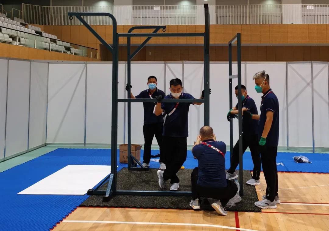 每日清晨六点,新健服务保障团队就已准时到达比赛场馆,布置工作、商讨方案、沟通协调。由于个别项目对于器材的不同要求,比赛场馆内的器材需要在极短的时间内更换完毕,新健服务保障人员有条不紊地在现场组织安装、调试、维护,确保器材在训练及比赛中安全、顺利使用,将中国“工匠精神”和“体育智造”展现在全球各国运动员的面前!