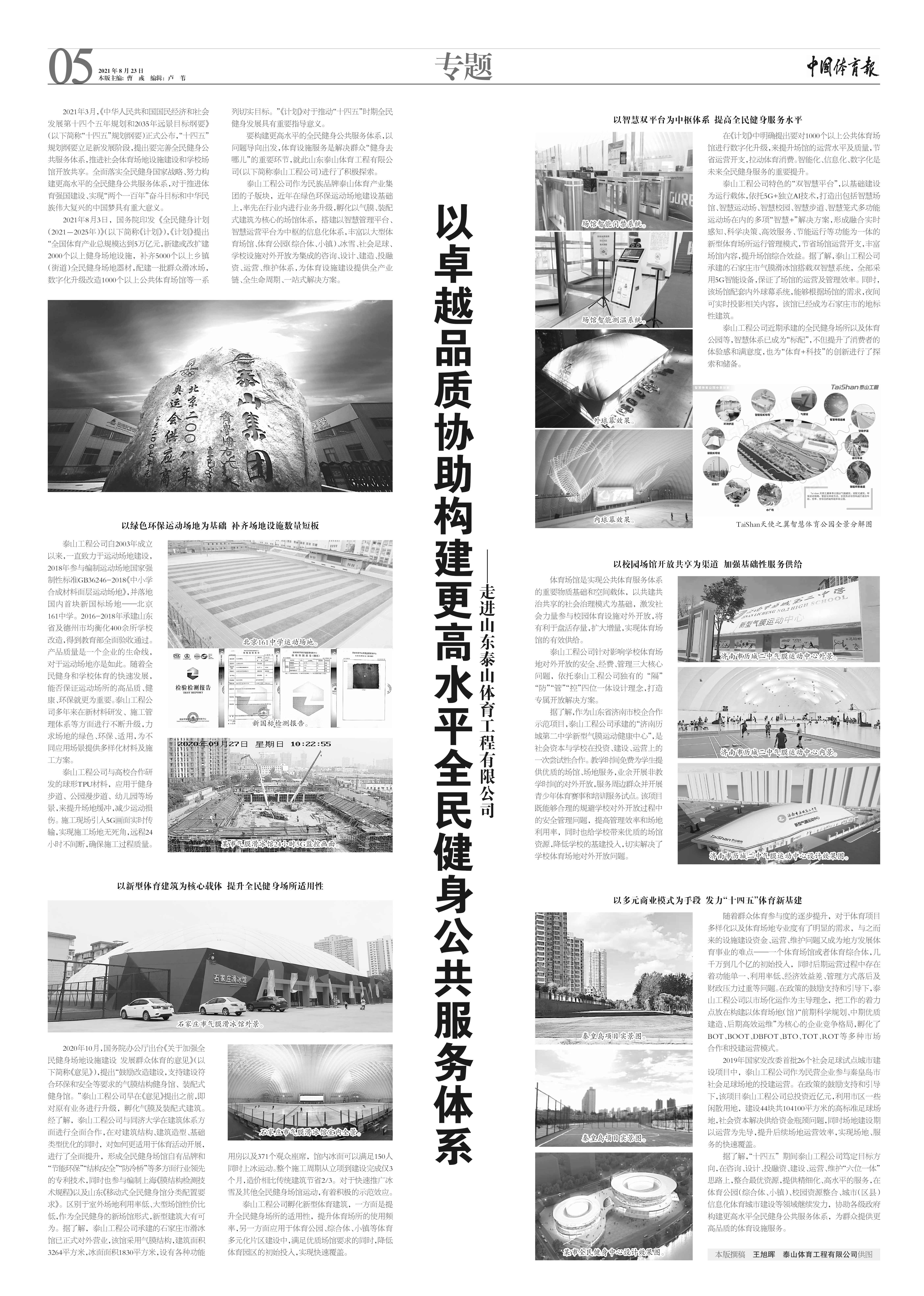 2021年8月23日,《中国体育报》整版刊载《以卓越品质协助构建更高水平全民健身公共服务体系——走进山东新健体育工程有限公司》。