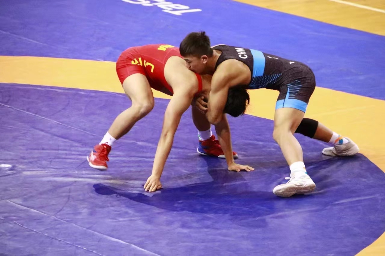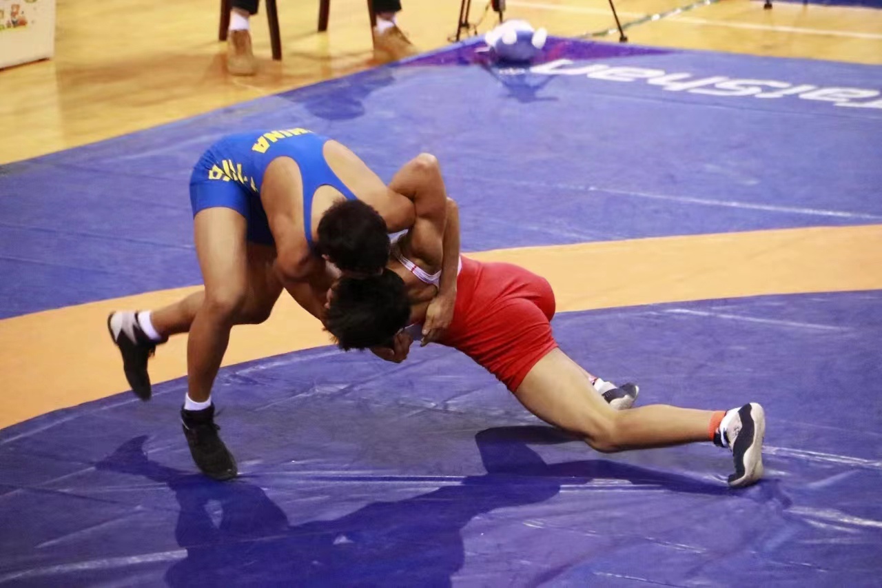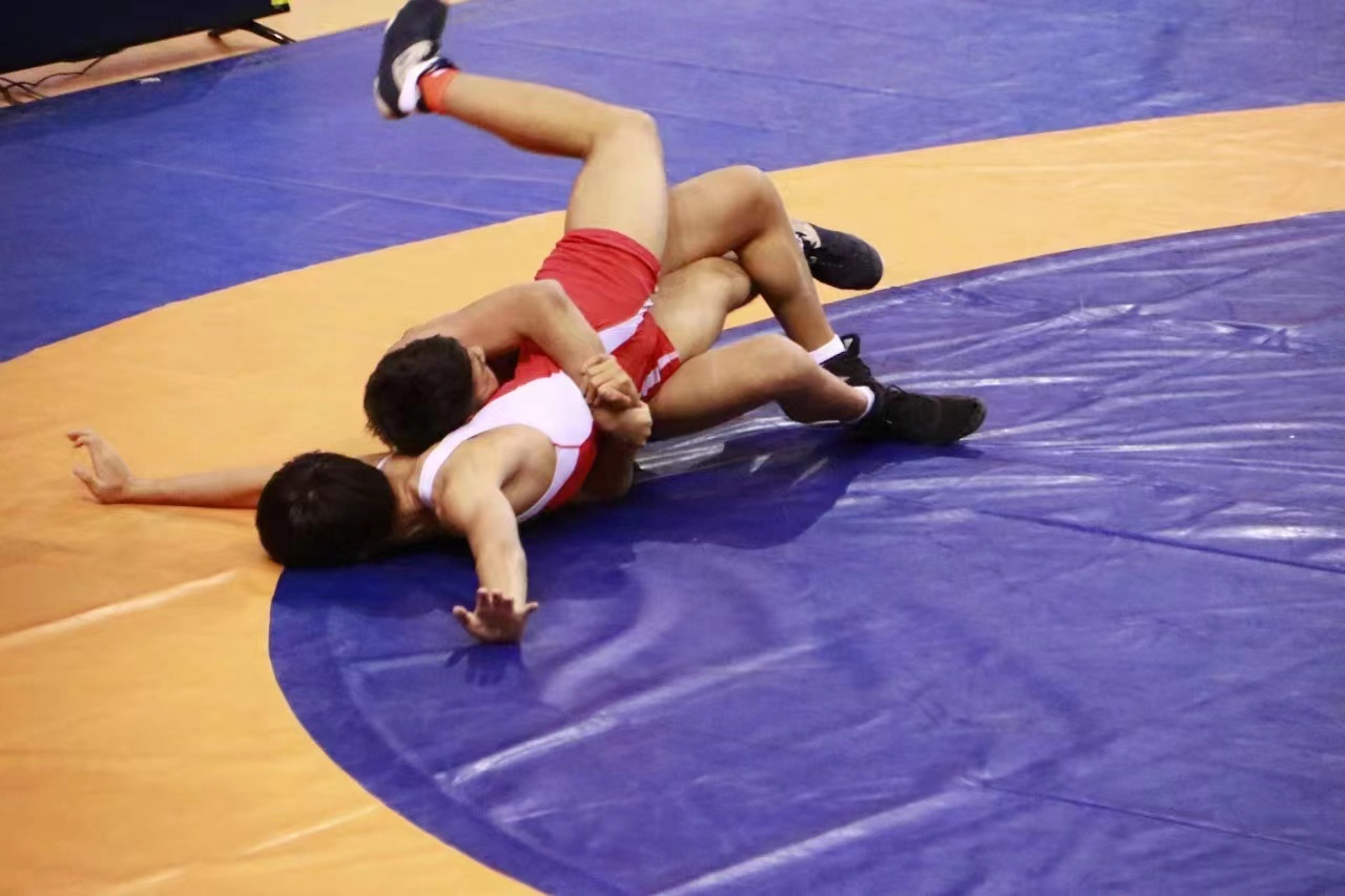 比赛现场,各代表队的摔跤健儿们激烈角逐、灵活移动,在新健摔跤器材上展示出一系列高难度、大幅度技术动作,充分展现出了摔跤运动的独特魅力。