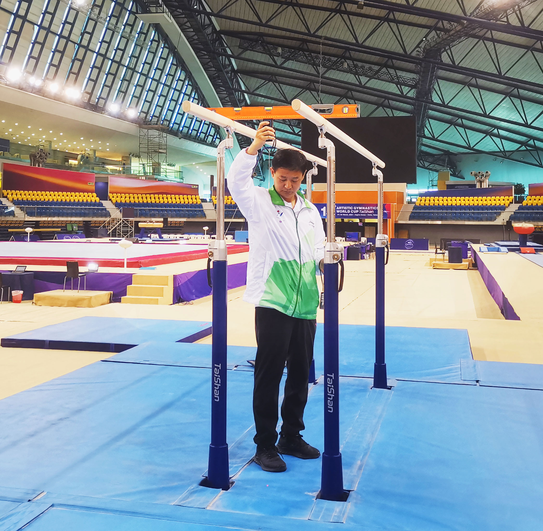 在精彩的赛事背后,离不开新健体育团队的默默付出。新健体育专业服务保障团队驻扎赛场全程守护,为大赛保驾护航。赛前,他们连续日夜奋战,如期完成训练场馆、热身场馆、比赛场馆每件器材的安装、调试,检测工作,为比赛做好充分保障;赛中,新健服务人员30秒内即可完成高低杠的升杠降杠,保证了比赛的流程进行。新健保障团队以高效、精准、专业的表现震惊全场,赢得了极高赞誉。