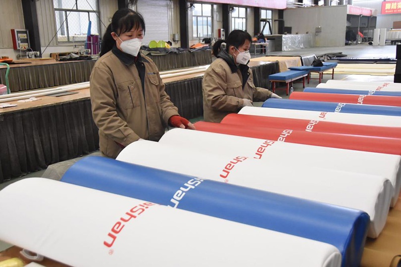 邓云锋实地考察了年产12万辆超轻型高档碳纤维自行车项目、年产2000万平新材料多功能人造草坪项目,对新健体育智能化、数据化、现代化的生产工厂和高端产品表示高度肯定。