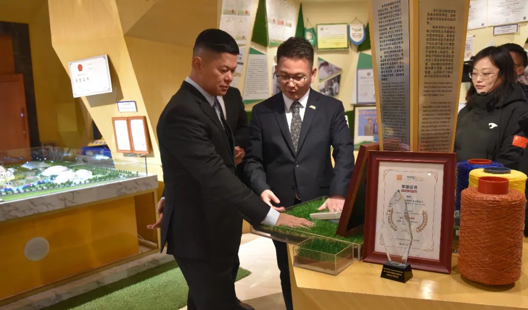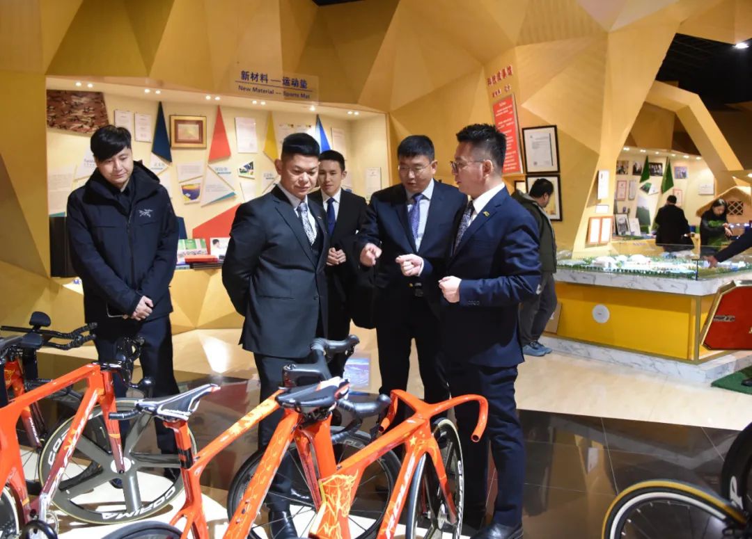 在新健体育董事长卞青峰的全程陪同下,奥克托哈里一行先后参观了解了新健体育在新材料体育器材、碳纤维自行车、人造草坪、体育芯片、数字化智能化工厂等前沿技术领域的最新成果,奥克托哈里主席对新健体育的产品和技术给予了高度评价,并特别赞赏了新健瑞豹自行车的科技创新成果。