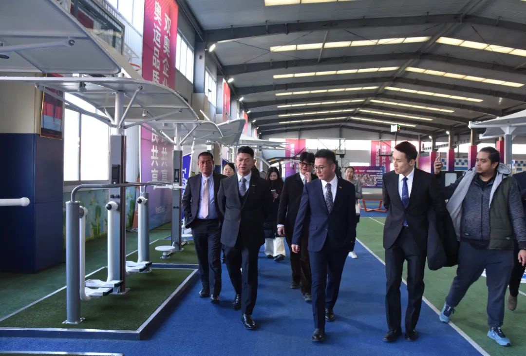 12月23日,印度尼西亚奥委主席、亚洲自行车联合会第一副主席拉贾·奥克托哈里一行与中国自行车运动协会副秘书长袁媛来新健体育参观考察。