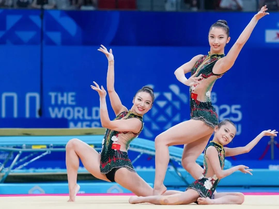 技巧女子三人:中国组合在新健专业器械上完成惊险4层人塔,以28.5分摘金!