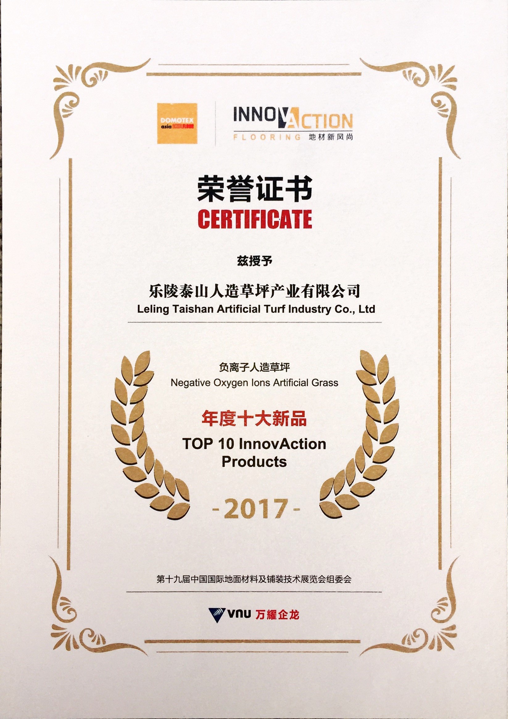 乐陵新健人造草坪产业有限公司负离子人造草坪年度十大新品2017
